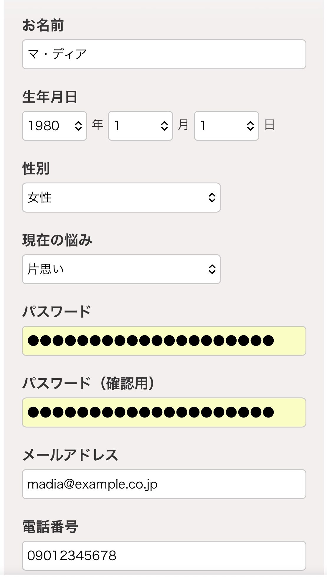 名前や生年月日、電話番号などの必要事項を入力。