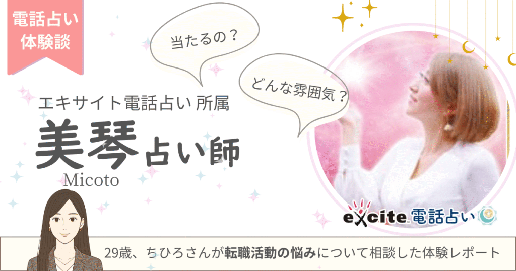 「転職したいけど、自分に合う仕事って何だろう…?」「ちゃんと内定がもらえるのか不安…」 そんな不安を抱えながらも、転職活動に踏み出した“ちひろさん”。 今回相談したのは、共感力に優れ、穏やかな語り口で背中をそっと押してくれる実力派占い師・美琴... -