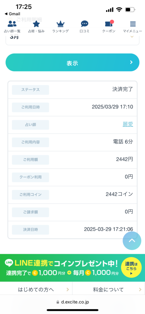エキサイト 麗愛占い師 体験談