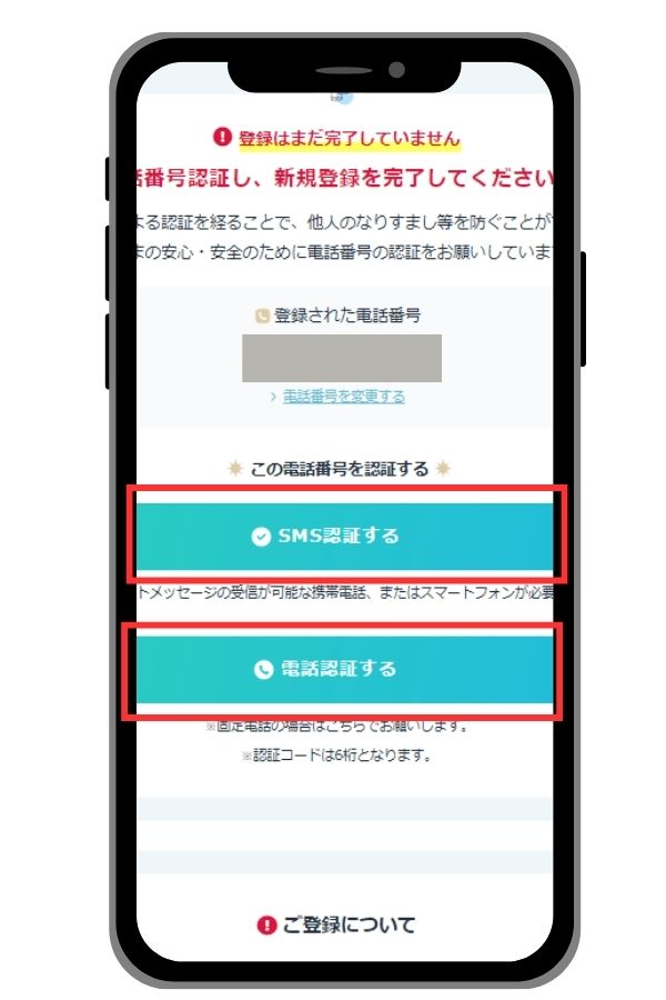 ②で入力した電話番号がスマホなら「SMS認証する」をタップ