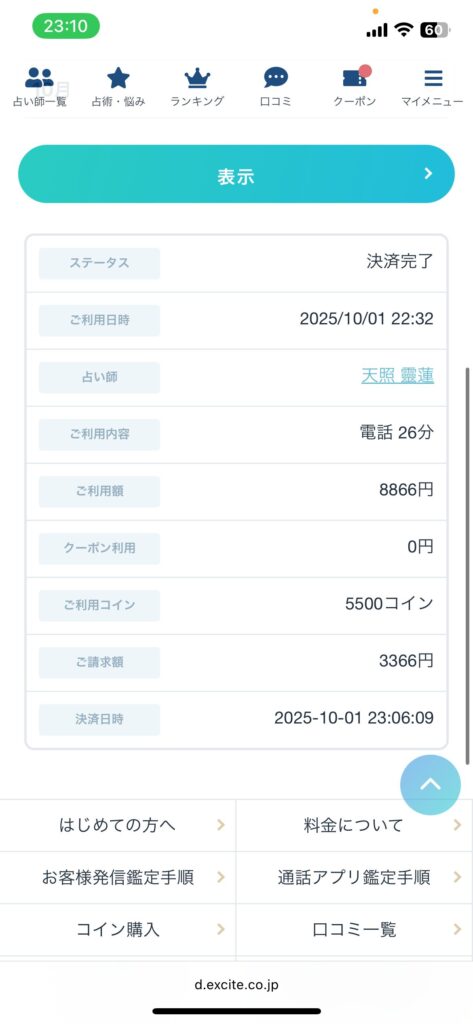 天照靈蓮先生の鑑定料(1分341円)だと、約16分間も無料で占ってもらえる計算です。