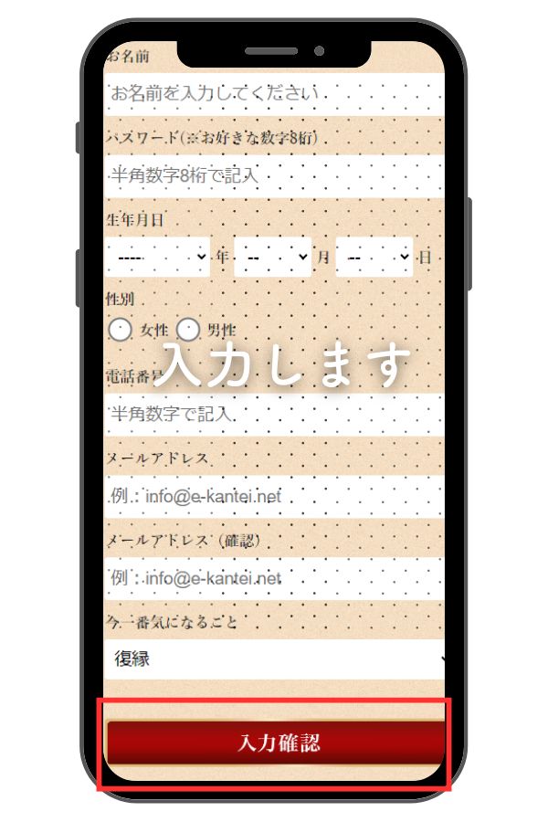 名前やメールアドレスなどを入力して『入力確認』をタップ