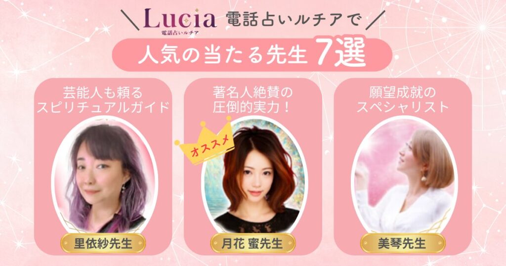 ここでは、電話占いルチアで人気の当たる先生7名を紹介します。